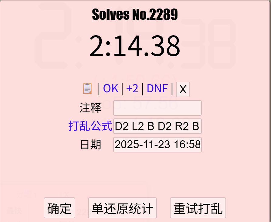打乱:D2 L2 B D2 R2 B D2 B D2 B2 U2 F' D L D' U' R' D' L F Fw Uw'