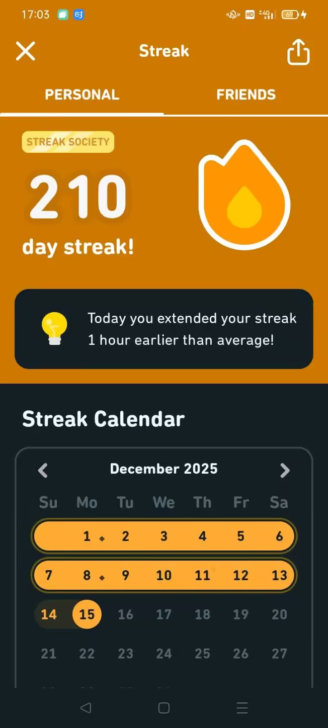 重新捡起了多邻国,绝赞连胜中:
